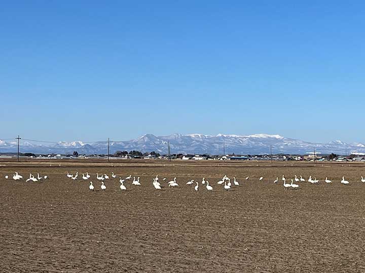 会社のまわりの田んぼには、白鳥が群れをなして集まっています。
